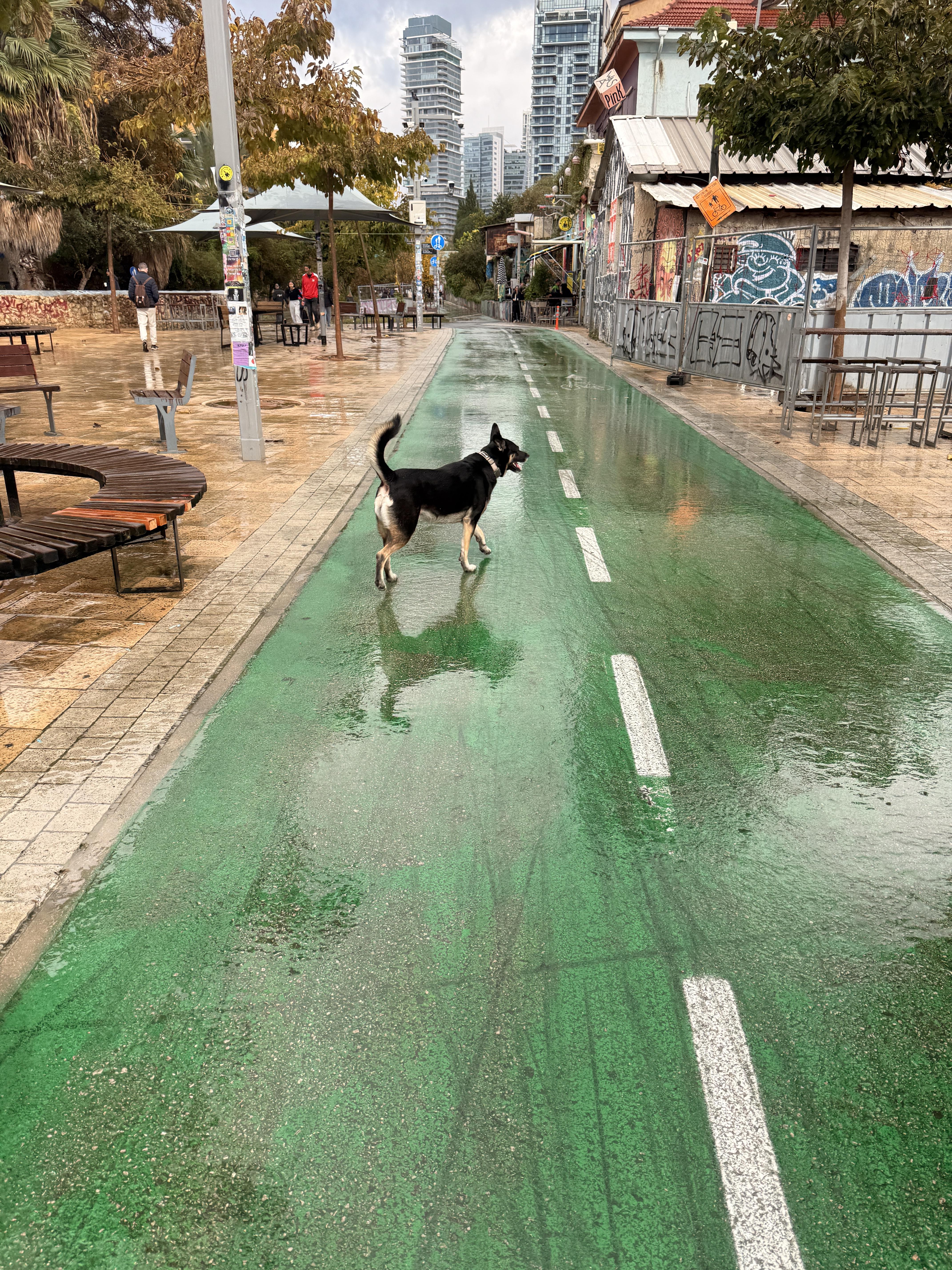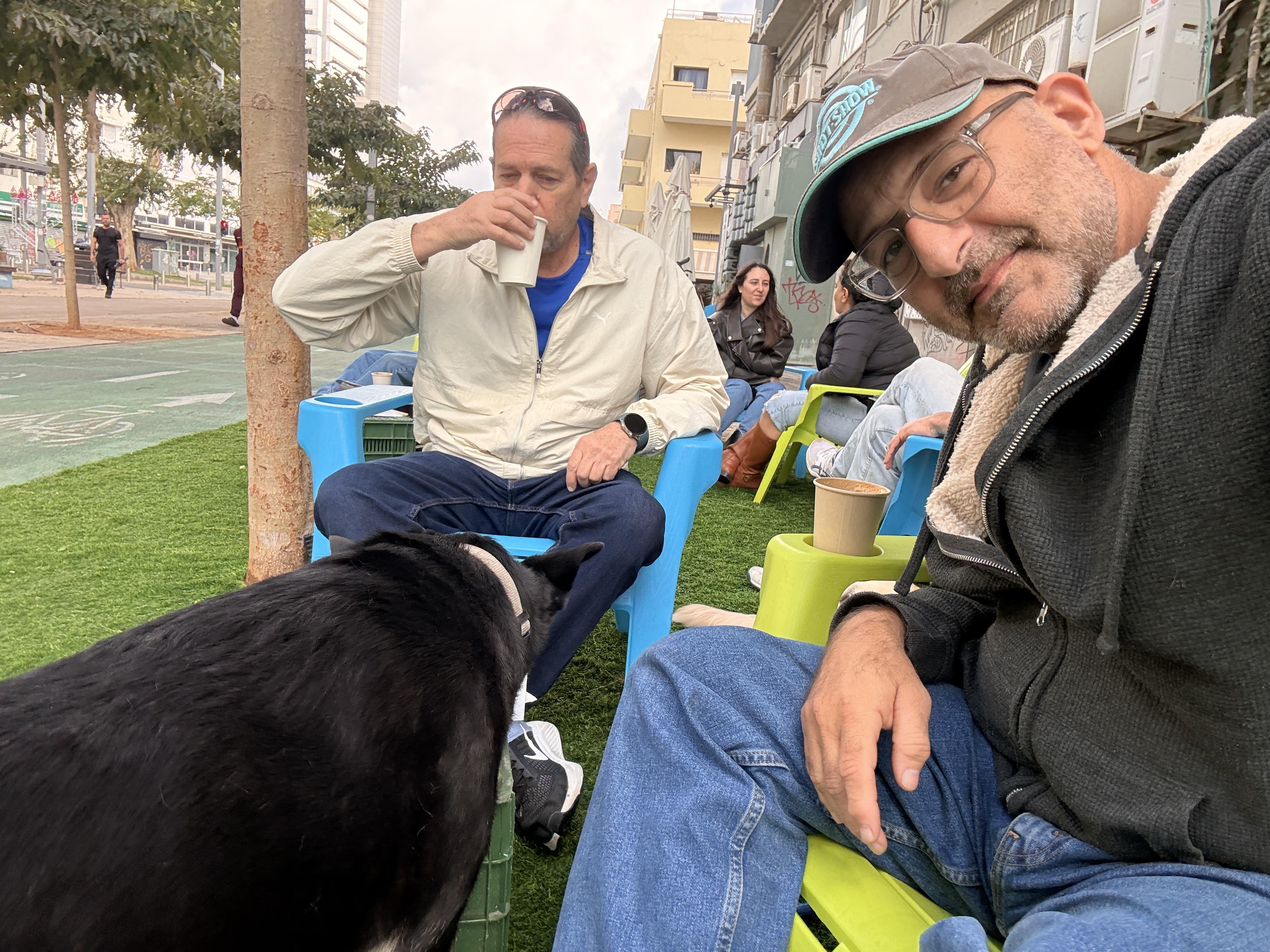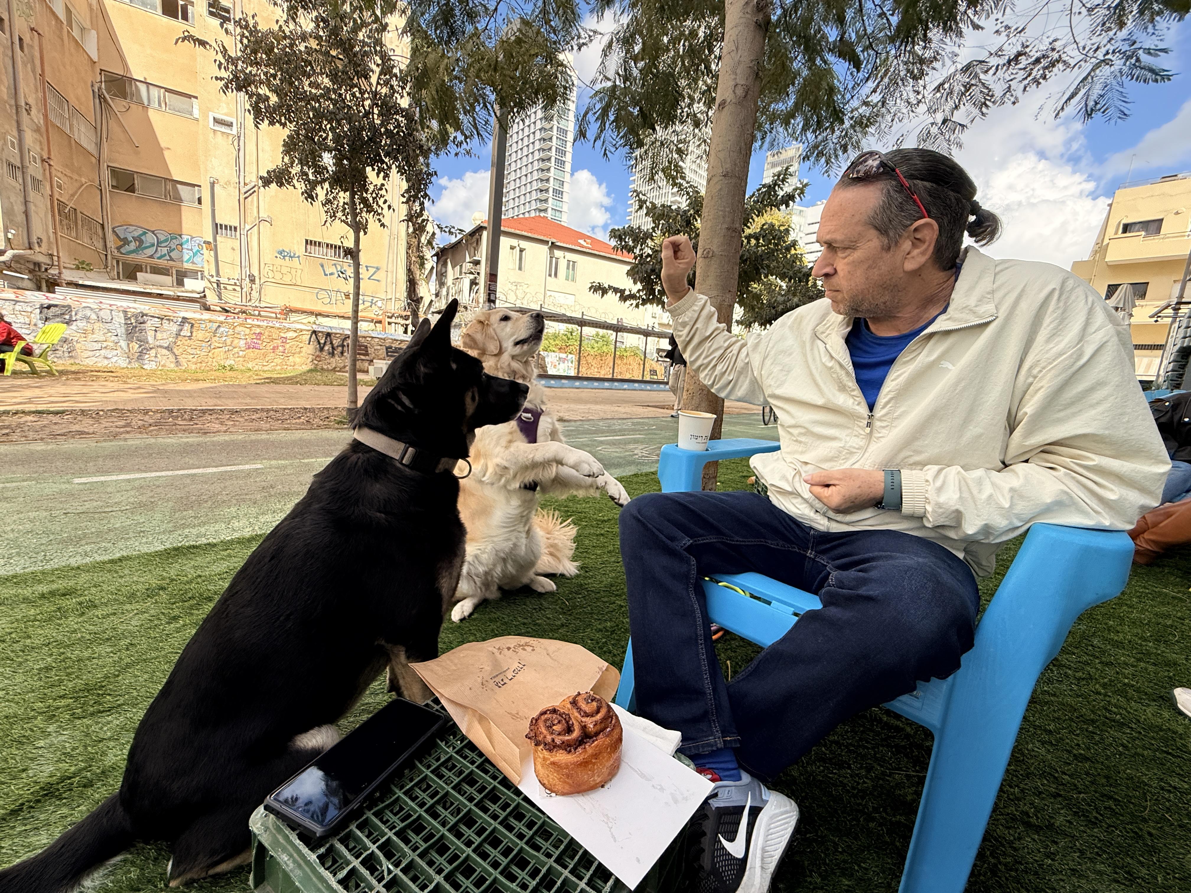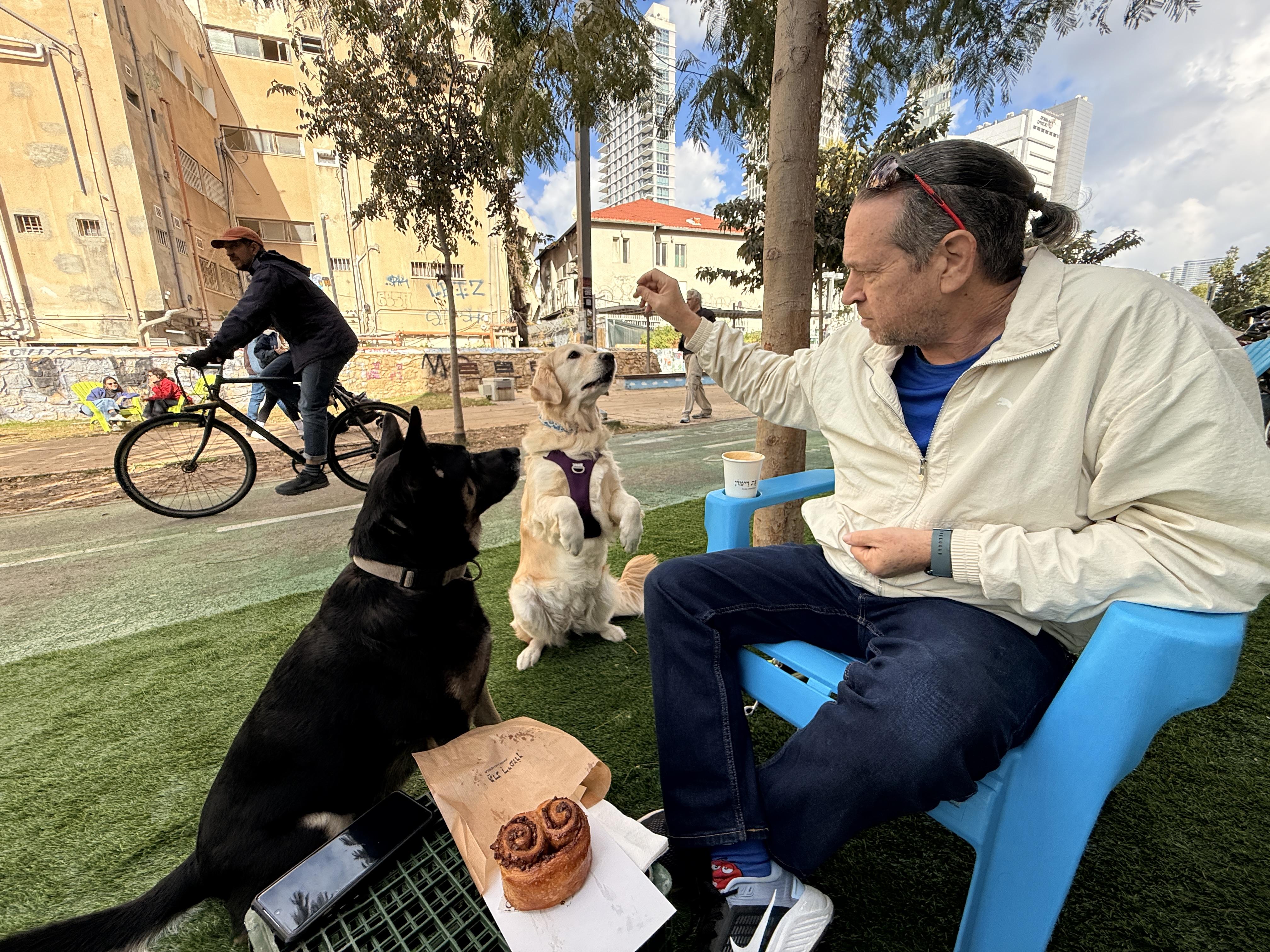 קפצנו למדרחוב המסילה בתל אביב, מקום מדליק, יש בית קפה "כלבים" חביב ליד גינת הכלבים, שהרבה בעלי כלבים מגיעים.